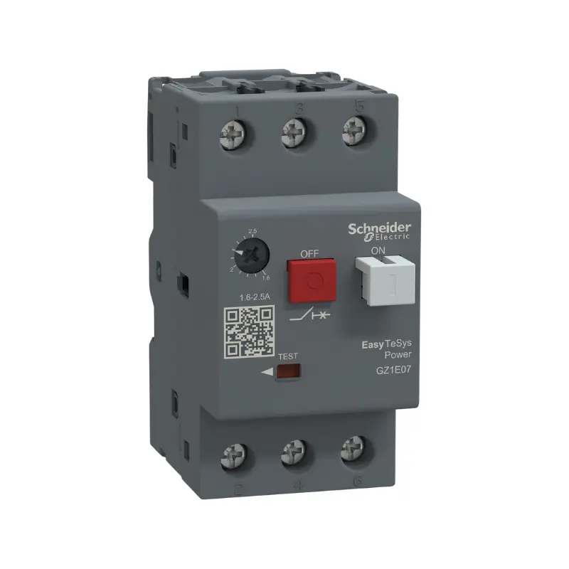 شنايدر GZ1E07، قاطع كهرباء تيار الموتور، 1.6..2.5 امبير، ثلاثي الأقطاب، وحدة فصل مغناطيسية حرارية