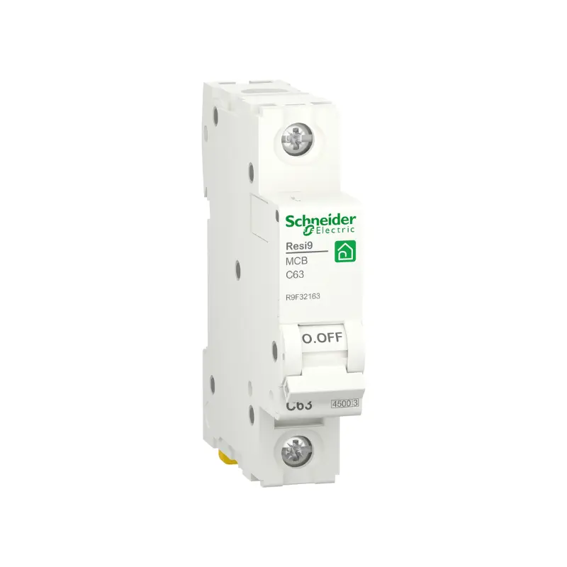 شنايدر R9F32163، مفتاح احادي القطب، 63 امبير، Resi9، منحني C، قاطع كهرباء، 4500 امبير (IEC/EN 60898-1)