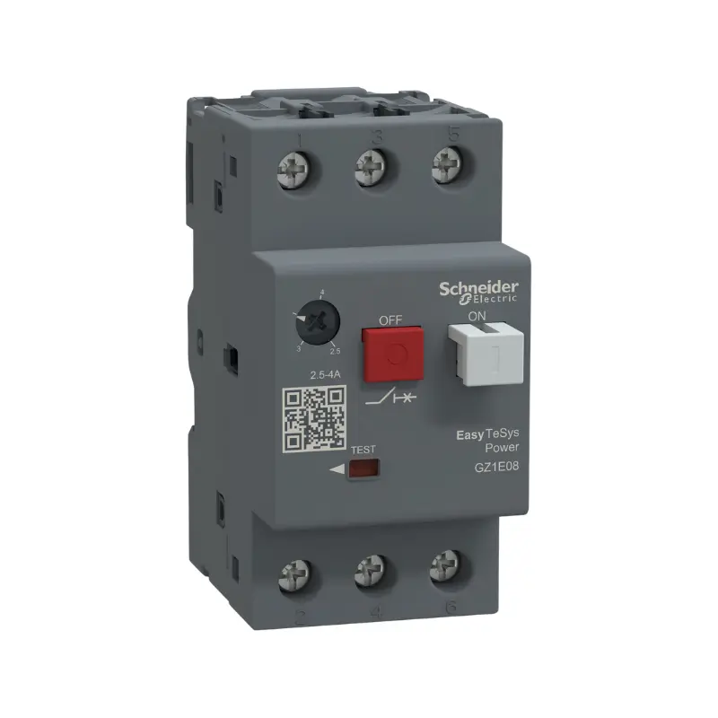 شنايدر GZ1E08، قاطع كهرباء تيار الموتور، 2.5..4 امبير، ثلاثي الأقطاب 0.16..0.25 أمبير، وحدة فصل مغناطيسية حرارية