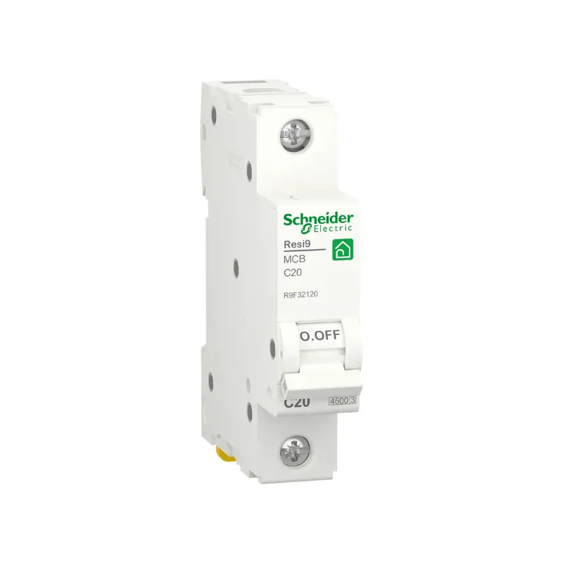 شنايدر R9F32120، مفتاح احادي القطب، 20 امبير، منحني C، قاطع دائرة مصغر، Resi9، قدرة فصل 4500 امبير (IEC/EN 60898-1)